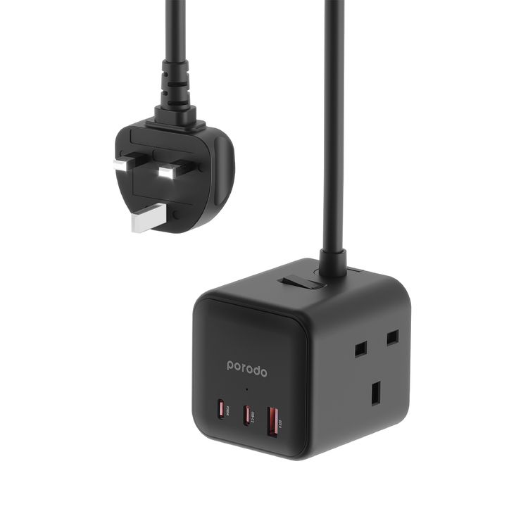 The Porodo GaN Power Cube Multi-Port Charger is a strong and adaptable charging option made for modern gadgets. With a 3250W total power output, it can manage many kinds of gadgets, such as tablets, smartphones, and laptops. With its three AC outlets, the charger can recharge numerous gadgets simultaneously. The USB-C 1/2 output provides 65W for quick and effective charging, while the USB-A Quick Charge output can supply up to 60W. The charger features safety and overload protection. This helps keep your devices safe from damage during use. The 13A UK 3-pin power cord is 2 meters long. It’s great for flexibility and convenience. Its compact size lets you take it anywhere or fit it in any workspace. The 60W USB power lets you charge your devices quickly and reliably. The Porodo GaN Power Cube Multi-Port Charger offers a dependable, compact solution for all your power requirements, whether you're charging a MacBook or several devices.