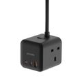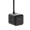 Porodo GaN Power Cube Multi-Port Charger with 3 AC Sockets, USB-A & Dual USB-C Ports, 3250W Power, Overload Protection, 60W USB-A QC Output, Super-Compact - Black