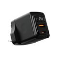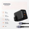 Porodo GaN Wall Charger with USB-C to Lightning Cable, 1m Cable Length, USB-A & USB-C Ports, 25W Power Delivery, Built-in Safeguards, Fast Charge Support, Multiple Device Charging, Digital Display - Black