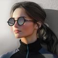 Porodo Geneva Round Frame Sunglasses with Adjustable Brightness for Any Light, Durable Flex-Frame Ultra-Light 30.8g Weight, Stainless Steel Material, UV400 Protection, Unisex Design - Black