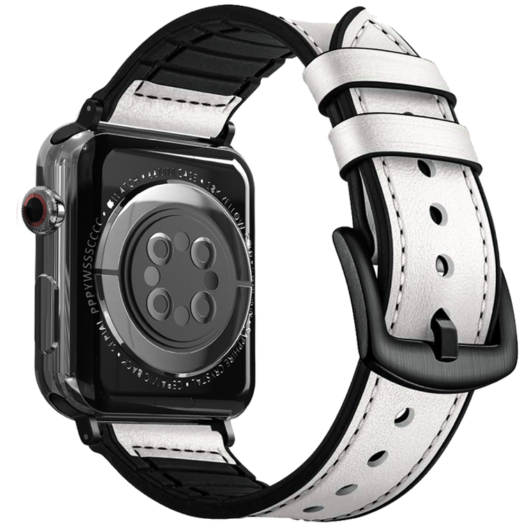 Porodo iGuard Leather + Silicone Watch Band For Apple Watch 42/44/45mm