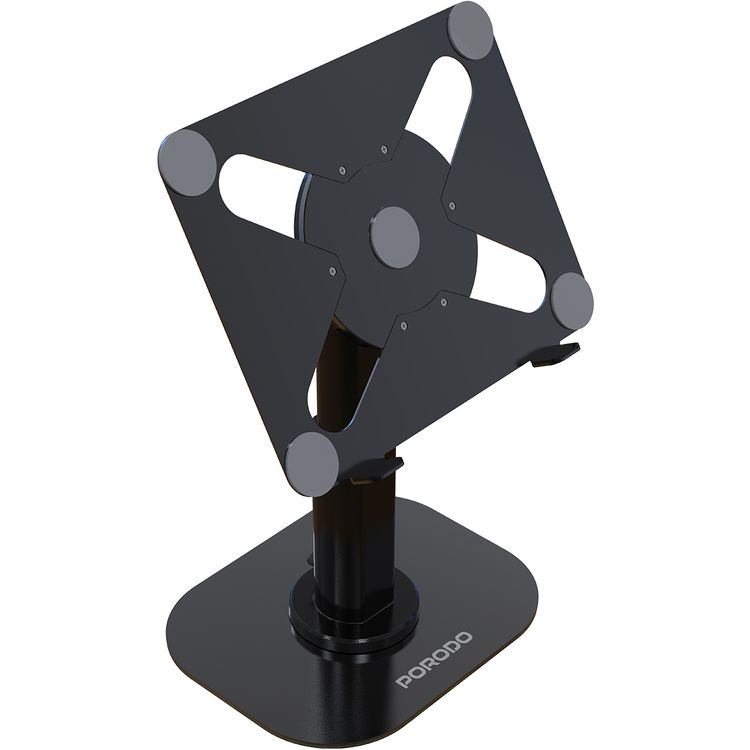 Porodo Laptop & Tablet Stand with Multiple Angle Dock, Adjustable Telescopic Rod, 1.6kg Weight Support, 43cm Adjustable Height, ABS & Silicone Material, Anti-Slip Base, 11"-17.3" Device Compatibility - Black