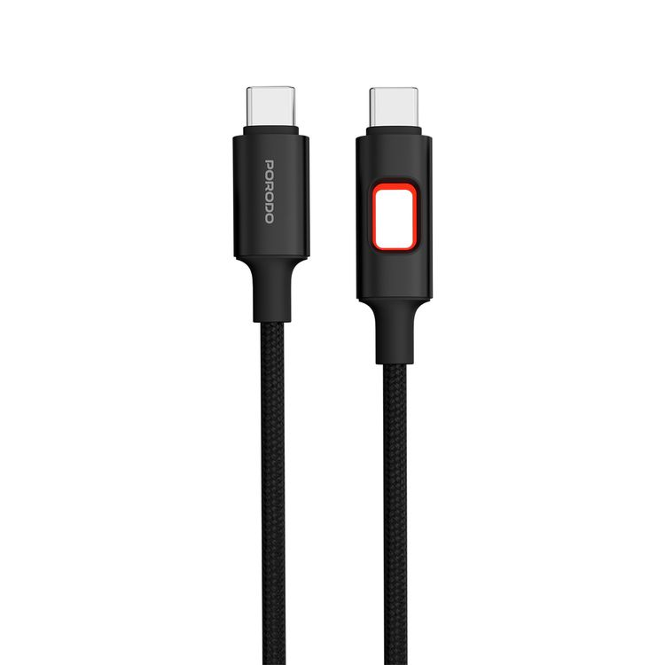 Porodo LED Braided USB-C to USB-C Cable with 60W Power Delivery, 1.2m Cable Length, Tangle-Free Design, High-Speed Data Transfer, Fast Charging Speed, Superior Durability - Black