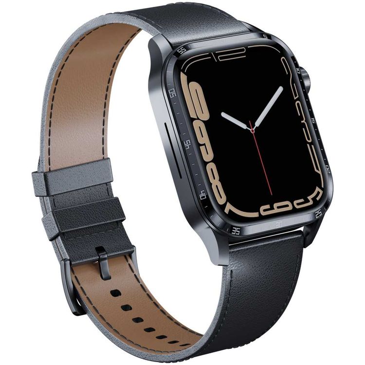 Porodo Lenox Smart Watch 1.91 Wide Touch Screen with Black Leather Strap - Black