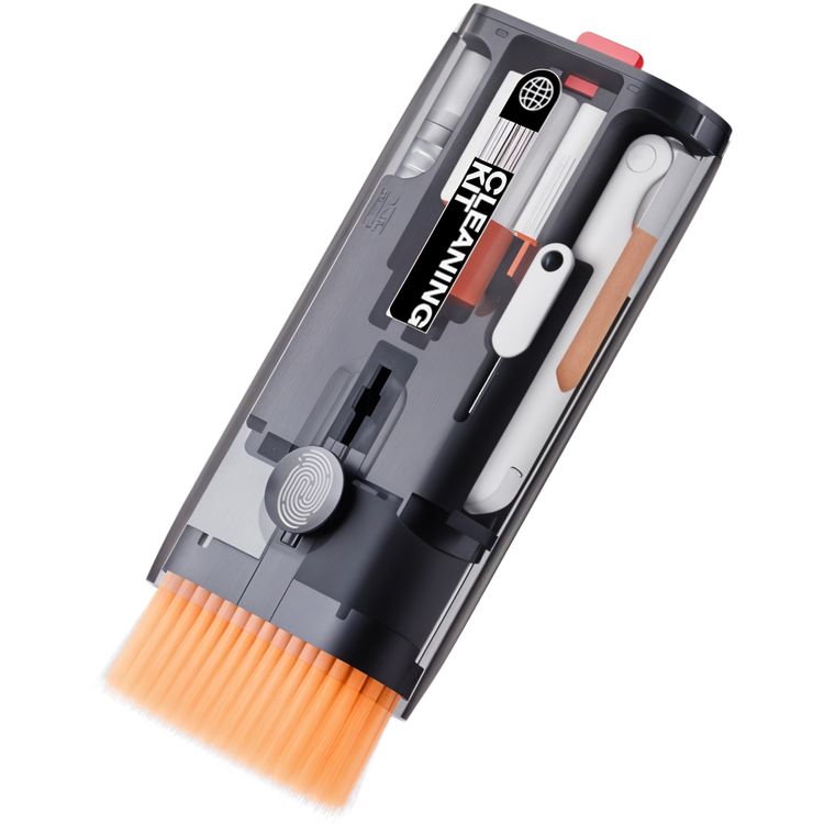 Porodo Lifestyle 11-in-1 Multipurpose Cleaning Kit for Phones & Laptops & Cameras with Key Puller, Keyboard Brush, Mini Brush, Flocking Sponge, Lens & Port Cleaner, ABS Material, Portable Design - Black