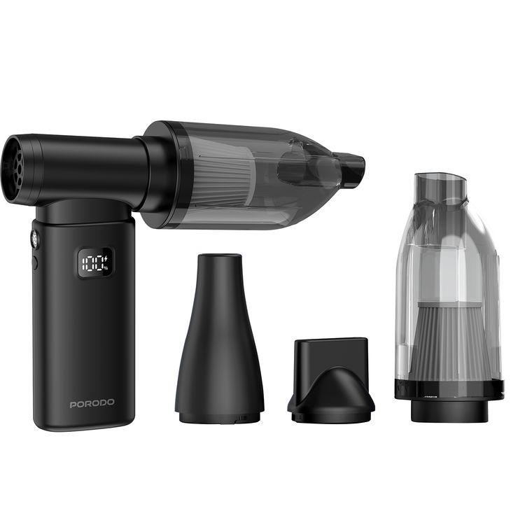 Porodo Lifestyle 2-in-1 Handheld Vacuum & Air Duster with 5 Speed Settings & 4 Detachable Nozzles, 7000Pa Suction Power, 160mL Dust Box Capacity, 130000RPM Motor Speed