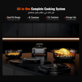 Porodo Lifestyle 4-in-1 Dual-Pot Glass Air Fryer for Bake, Crisp, Recrisp, Fry, 1.5L Small Pot Capacity, 4L Large Pot Capacity, UK 3-Pin Plug Power Cord, Health-Conscious Glass Design, Intelligent Pause Mode, 360° Turbo Heat Technology - Black