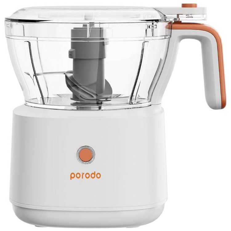 Porodo Lifestyle 4-in-1 Food Chopper with 88W Rated Power, Stainless Steel Blades, 25 Minutes Working Time, 1500mAh Battery, 1 Liter Capacity, Low Power Consumption - White