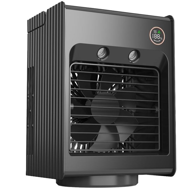 Porodo Lifestyle Air & Mist Portable Cooling Fan with Night Light and Oscillation, 4000mAh Battery Capacity, Digital Display, Compact & Portable, Dual Mist Outlet, Type-C Charging Port, Ice Cube Tray Included - Black