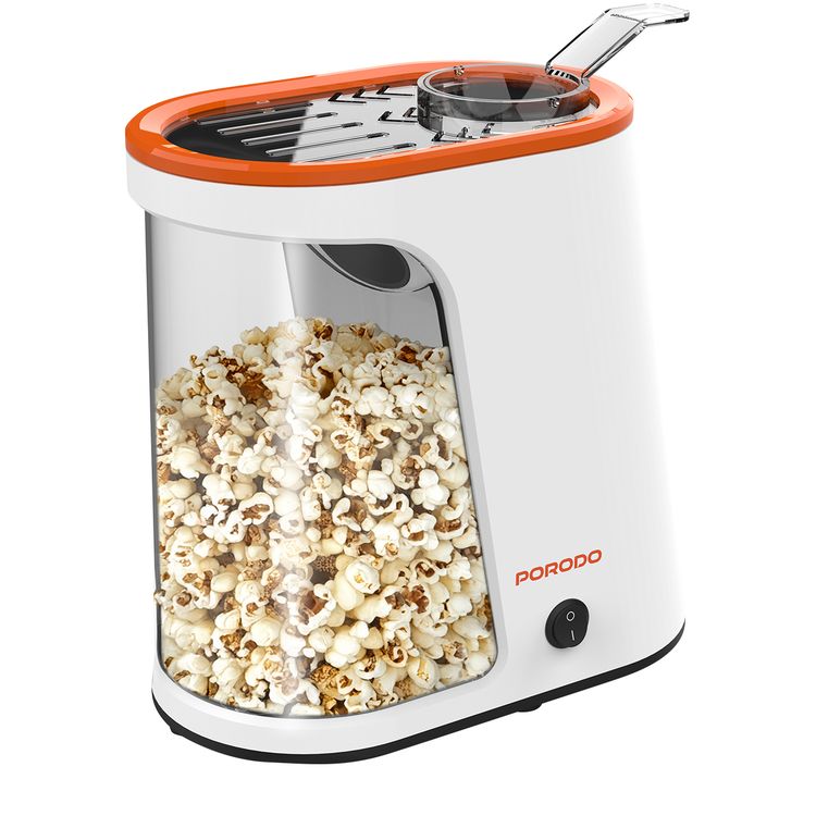 Porodo Lifestyle Air-Popped Popcorn Maker, Quick and Efficient, 60g Corn Kernel, 2-4 Minutes Prep Time, Oil-Free - White / Orange