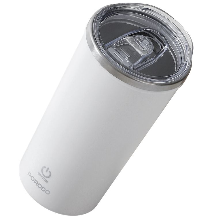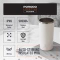 Porodo Lifestyle Auto-Stirring Insulated Mug with 400mL Capacity, Anti-Slip Base, 300mAh Battery Capacity, 120-Seconds Mixing Time with Auto-Stop - White