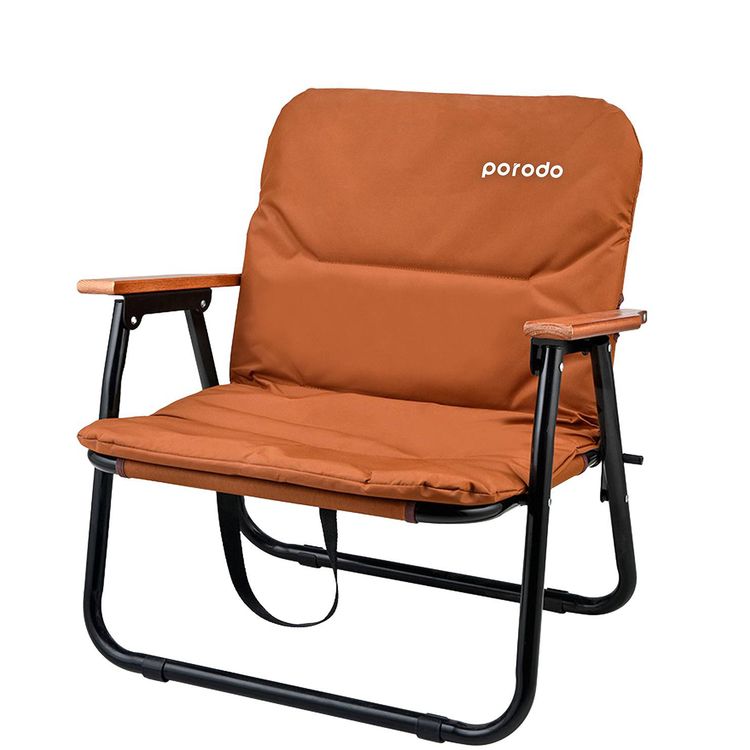 Porodo Lifestyle Camping Foldable Chair with 150kg Load Capacity, Aluminum Frame + 600D Oxford Cloth + Beech Wood Material - Brown