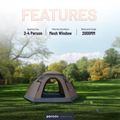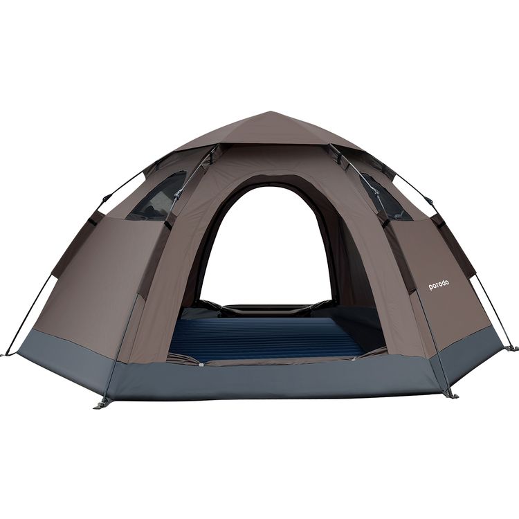 Porodo Lifestyle Automatic Camping Tent for Up to 4 People, Mesh Window, Water-Proof & Wind-Resistance, Quick & Easy Set-Up, Includes Ground Nails & Storage Bag - Brown