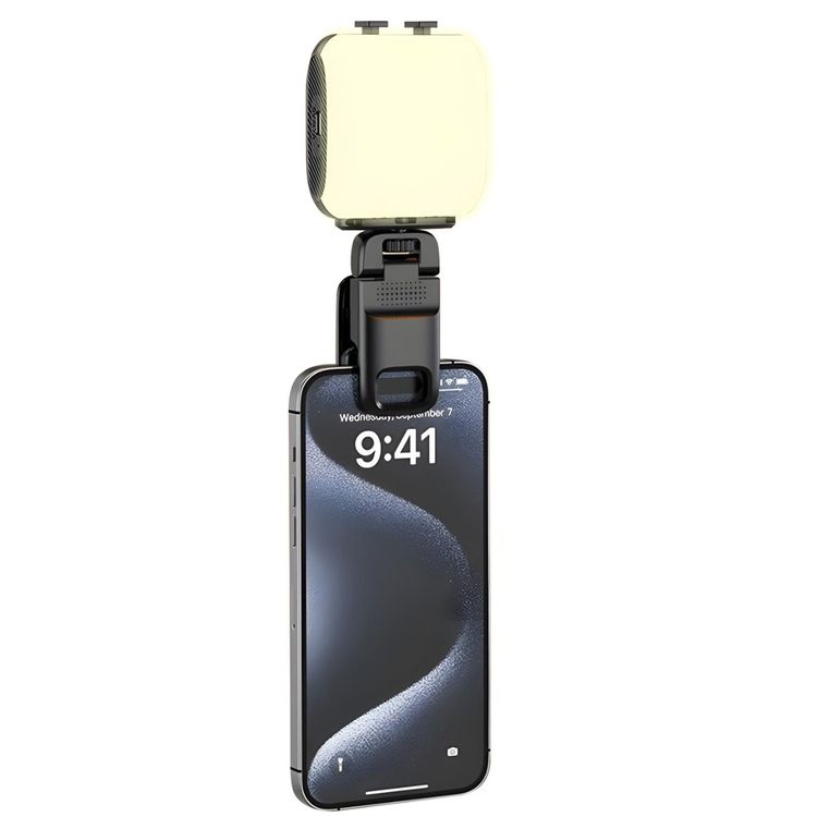 Porodo Lifestyle Clip-On Fill Light with 3 Color Temperatures, 1000mAh Battery Capacity, Up to 24 Hours Working Time, 3 RGB Lights, Wide Compatibility, 4W Power - Black