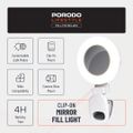 Porodo Lifestyle Clip-On Mirror Fill Light with Camera Shoe Mount, Type-C Charging Port, 200mAh Battery Capacity, Up to 4 Hours Working Time, 180° Adjustable Angle, Customizable Light Modes - White