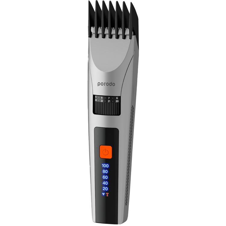 Porodo Lifestyle Cordless Hair Clipper with All-in-One Grooming Kit, 1200mAh Battery Capacity, Stainless Steel & Ceramic Blades Material, 90 Minutes Working Time, 120 Minutes Charging Time, Digital Display - Gray