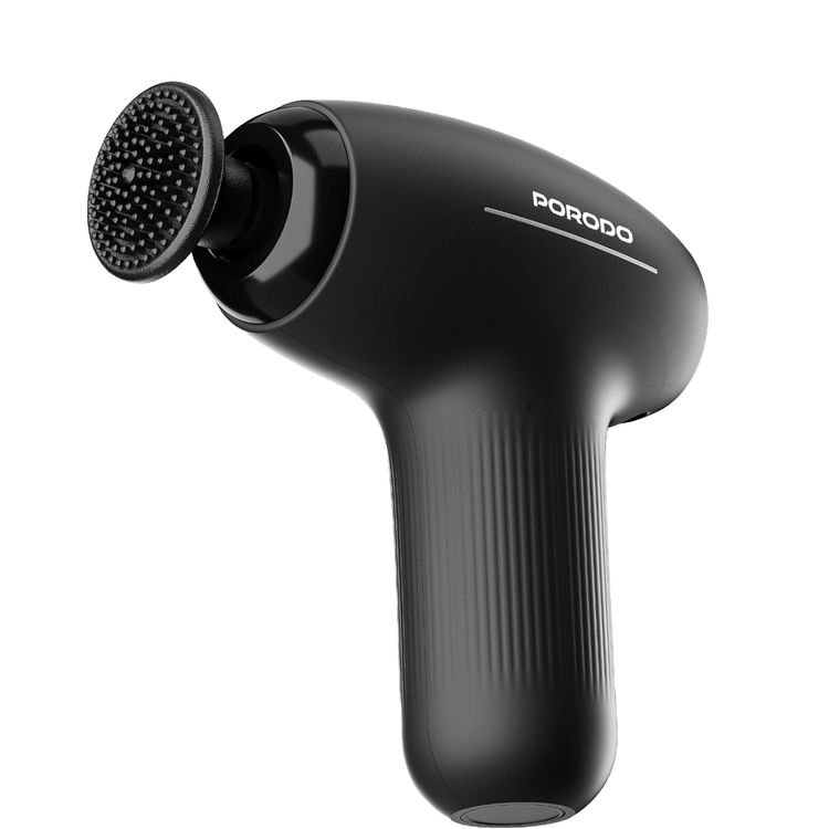 Porodo Lifestyle Cordless Mini Massage Gun with 4 Interchangeable Heads, 5 Speed Levels, Type-C Charging Interface, 3.5 Hours Recharge Time, 3 Hours Working Time, 1300mAh Battery Capacity, Safety Auto Shut-Off - Black