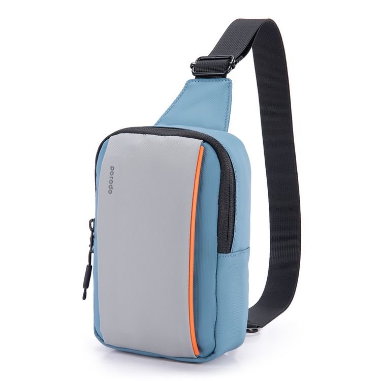 Porodo Lifestyle Sling Bag with Adjustable Shoulder Strap, Durable Material, Smooth Zipper, Type-C Charging Port, PD 20W, Water Resistant - Black / Blue