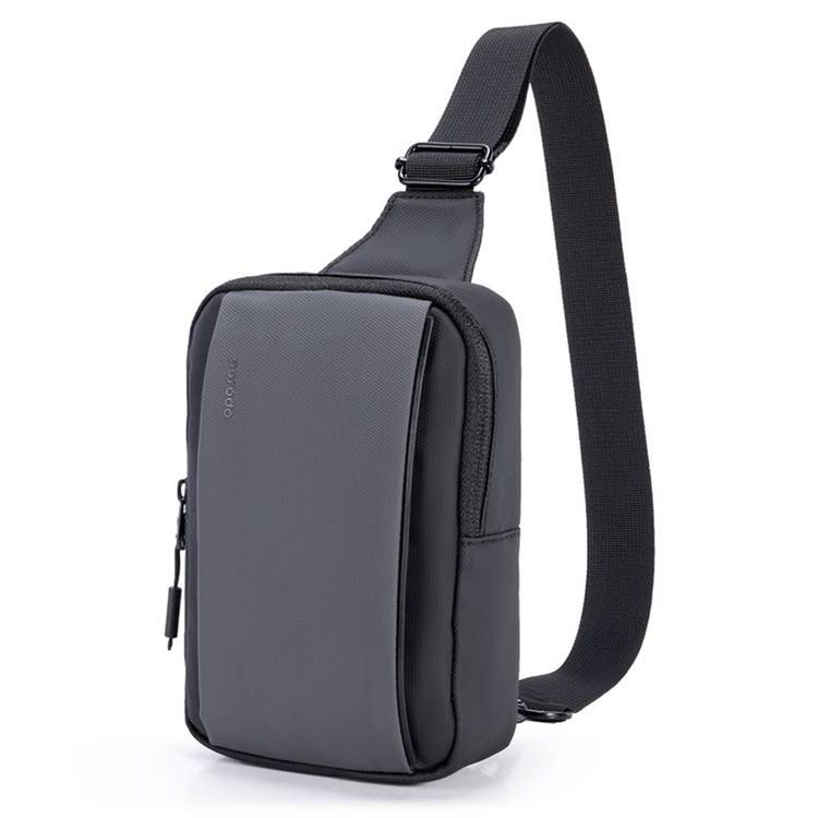 Porodo Lifestyle Sling Bag with Adjustable Shoulder Strap, Durable Material, Smooth Zipper, Type-C Charging Port, PD 20W, Water Resistant - Black / Gray