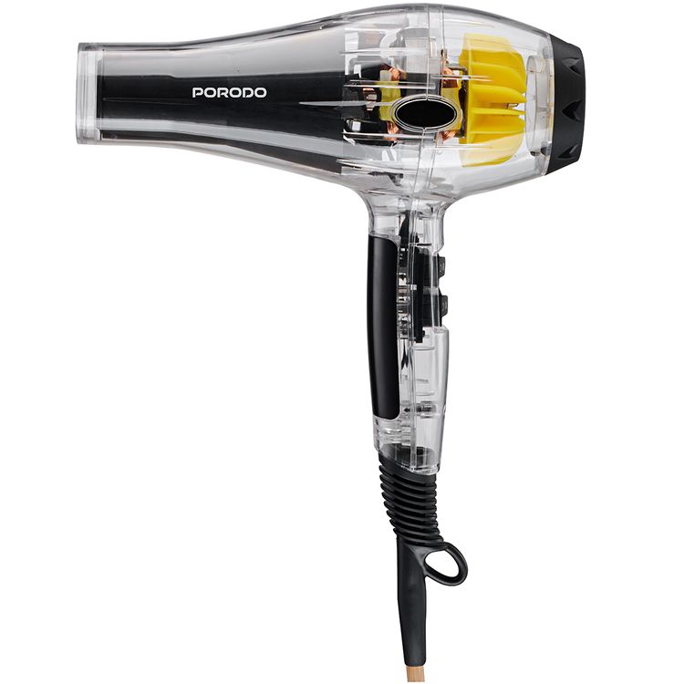 Porodo Lifestyle Crystal Shell Hair Dryer with 3 Airflow Modes, 2000W Rated Power, Removable Filter, Overheating Protection, 2 Speed Levels - Black