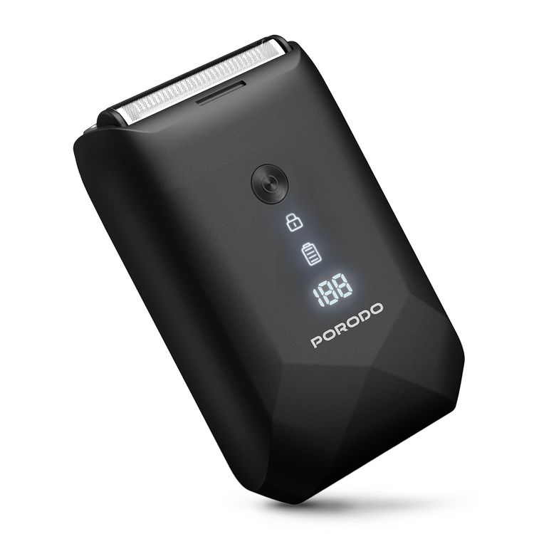 Porodo Lifestyle Dual-Blade Pocket Shaver with Travel Lock, Dual-Blade, Digital Display, Type-C Charging, 600mAh Battery, 8000RPM Motor Speed, Lightweight & Portable - Black