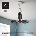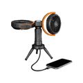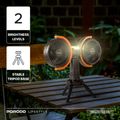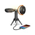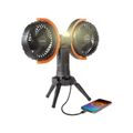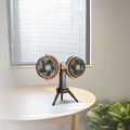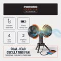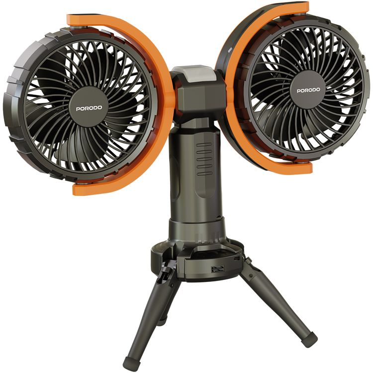Porodo Lifestyle Dual-Head Oscillating Fan with LED Light, Power Bank, ABS & PP Material, 8000mAh Battery Capacity, Stable Tripod Base, Type-C Charging Port, 4 Levels Fan Speed, Hidden Hook - Black