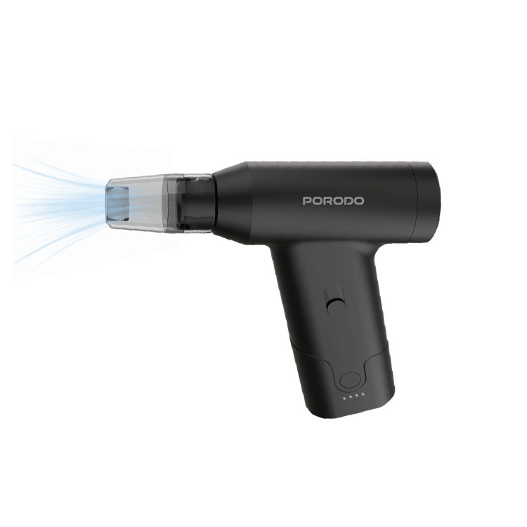 Porodo Lifestyle Dual-Mode Air Duster & Vacuum with 5 Detachable Nozzles, 4 Speed Levels, 160W Max Rated Power, Brushless Motor, 3 Hours Working Time, 130000RPM Motor Speed, 2x 2500mAh Battery Capacity, 10-50m/s Wind Speed, Type-C Charging, Efficient Dust Removal - Black