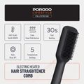 Porodo Lifestyle Electric Heated Hair Straightener Comb with 5 Temperature Settings, 33W Rated Power, 30 Seconds Fast Heating Time, 70% Frizz Reduction, Auto Shut-Off - Black