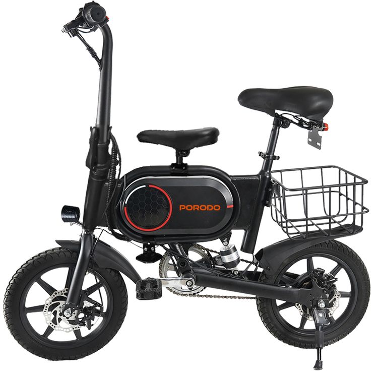 Porodo Lifestyle Folding Urban Electric Bike with 120kg Load Capacity, 14" Wheels, Pedal Assist System, 25km Max Distance, 15° Incline, Front and Rear Brakes - Black