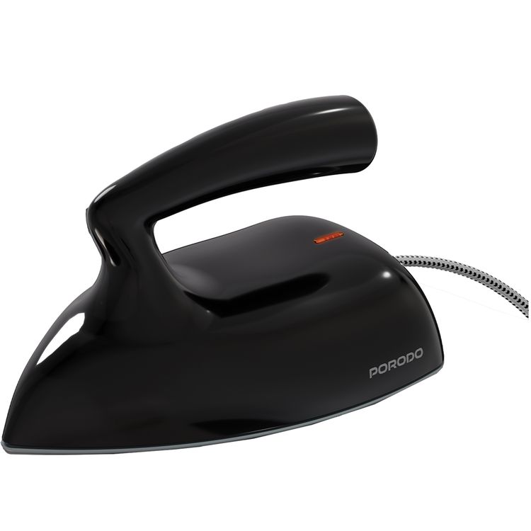 Porodo Lifestyle Ironix Portable Mini Iron Steamer with Bakelite Handle and Aluminum Soleplate Material, Dry Iron Function, Compact and Lightweight Design, Travel-Friendly Size, High-Quality materials, 100-240V Rated Voltage, 50/60Hz Rated Frequency - Black