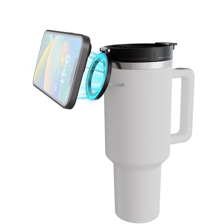 Porodo Lifestyle Magnetic-Mount Insulated Tumbler with 1.2L Capacity, MagSafe Compatibility, Stainless Steel Material, 90° Tilt Angle, Effortless Multitasking, 360° Rotation - White