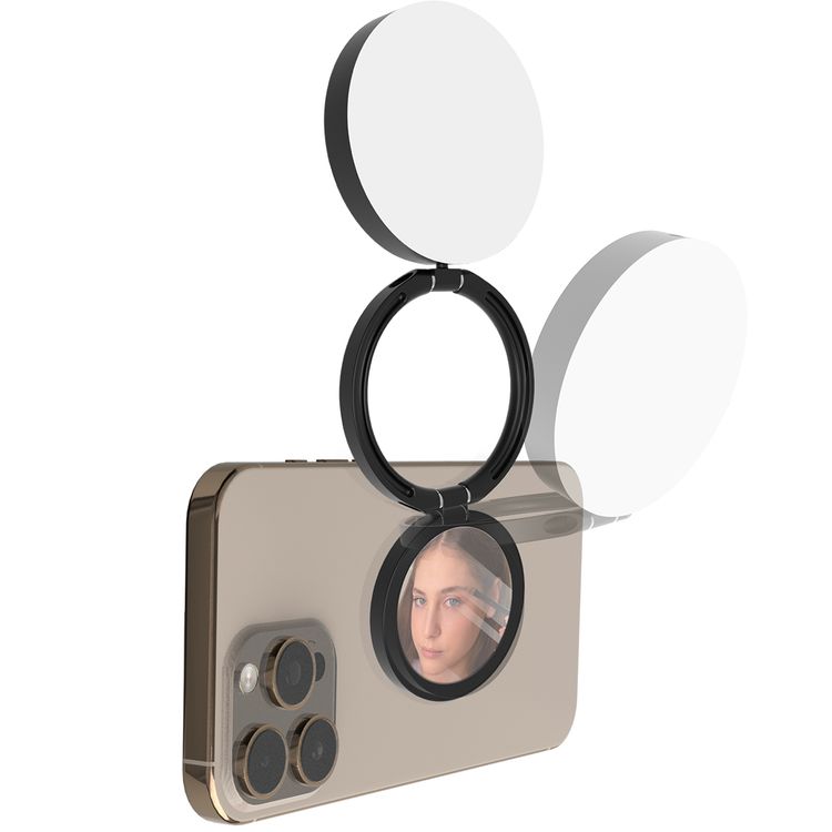 Porodo Lifestyle Magnetic Selfie Fill Light with 3 Color Temperatures, Brightness of 280 Lumens, 2 Hours Working Time, 120° Lighting Angle, MagSafe Compatibility, 360° Rotation - Black