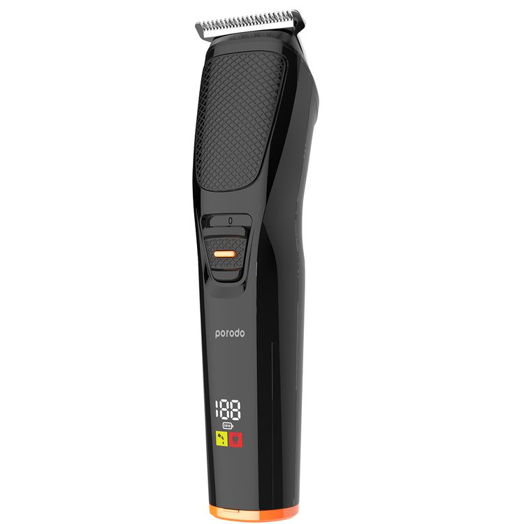 Porodo Lifestyle Multipurpose Beard Trimmer with Up to 120 Minutes Working Time, Stainless Steel Blade Material, 600mAh Battery Capacity, Digital Display, Wide T-Blade - Black