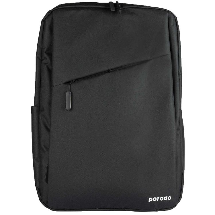 Porodo Lifestyle 15.6" Computer Backpack with Nylon Fabric Material, Adjustable Shoulder Strap, Zipper Closure, Charging Port, Lightweight Design, IPX4 Water-Resistant, Multiple Compartments - Black