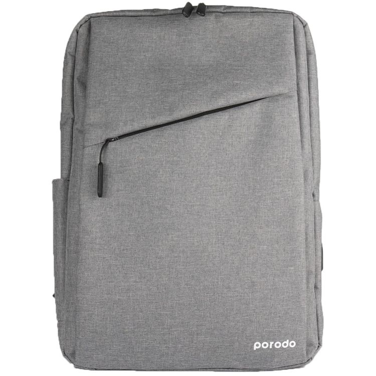 Porodo Lifestyle 15.6" Computer Backpack with Nylon Fabric Material, Adjustable Shoulder Strap, Zipper Closure, Charging Port, Lightweight Design, IPX4 Water-Resistant, Multiple Compartments - Gray