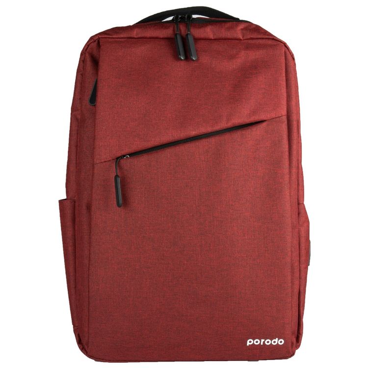 Porodo Lifestyle 15.6" Computer Backpack with Nylon Fabric Material, Adjustable Shoulder Strap, Zipper Closure, Charging Port, Lightweight Design, IPX4 Water-Resistant, Multiple Compartments - Red