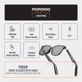 Porodo Lifestyle Optix Smart Glasses with Audio, Built-in Microphone, 6 Hours Playtime, Type-C Charging Interface, UV400 Protection, Bluetooth Version 5.3, 10m Transmission Range, 2x 110mAh Battery Capacity, Touch Control, Dual Stereo Speakers, Hi-Fi Sound Quality - Black