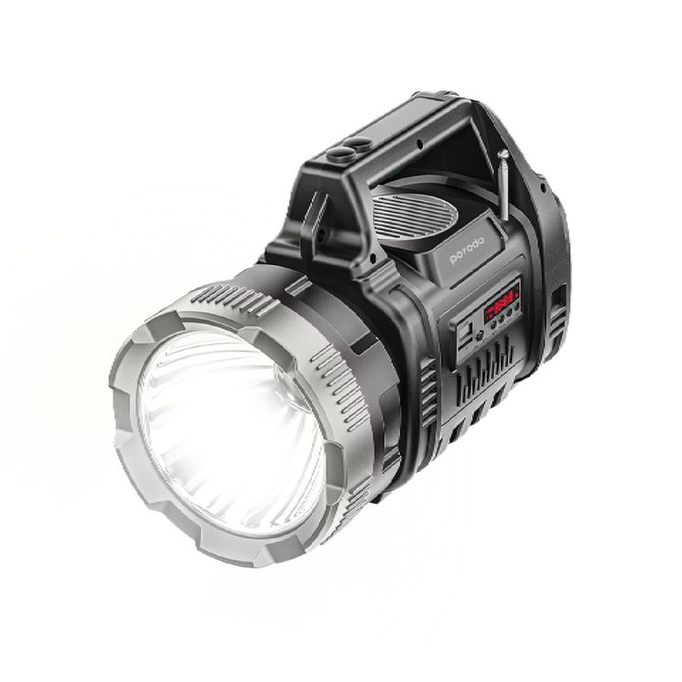 Porodo LifeStyle Outdoor 3-in-1 Adventure Flashlight and Speaker with FM Radio and Bluetooth Speaker, 10W LED, 5W COB, 1000+300 Lumens Brightness, 8000mAh Li-Ion Battery - Black