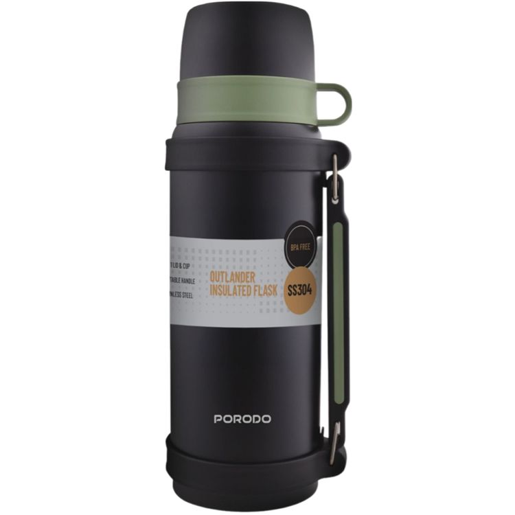Porodo Lifestyle Outlander Insulation Flask with Triple-Wall Copper Insulated, Leak-Proof Lid, 1.8L Capacity, Keep Hot & Cold Up to 24 Hours, Food-Grade Stainless Steel - Black