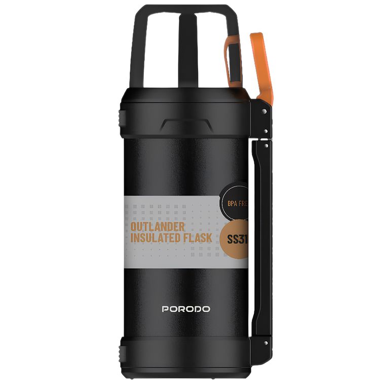 Porodo Lifestyle Outlander Insulation Flask with Triple-Wall Copper Insulated, Leak-Proof Lid, 2L Capacity, Keep Hot & Cold Up to 24 Hours, Food-Grade Stainless Steel - Black