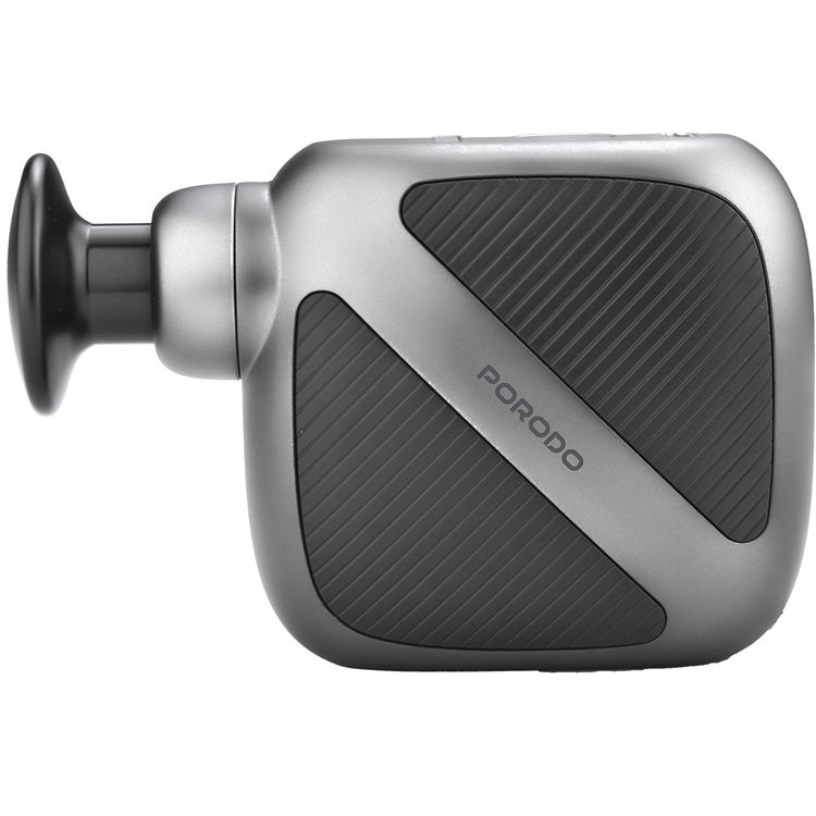 Porodo Lifestyle Pocket-Sized Muscle Relief Massager with Customizable Speed Settings, Quiet Operation Technology, 4 Speed Levels, 15 Minute Auto Shut-Off, 3 Interchangeable Heads - Gray