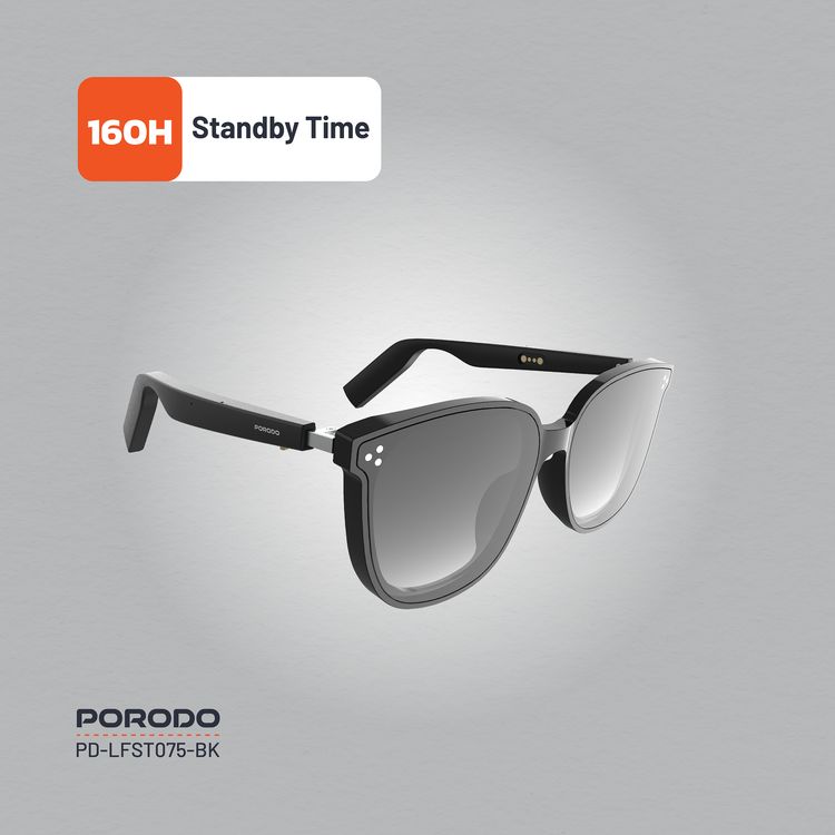 Porodo Lifestyle Polarized Sunglasses with Speaker, 160 Hours Standby Time, 2 Hours Charging Time, Bluetooth Version 5.3, Push-Button Controls, Multi-Coated Lens - Balck