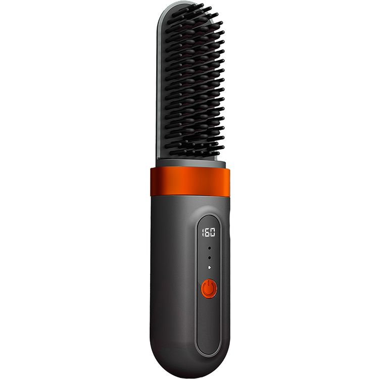 Porodo Lifestyle Portable Heated Styling Brush with PTC and Ceramic Heating Plate, 3 Temperature Settings, Type-C Charging Port, 4000mAh Battery Capacity, 1 Hour Working Time, Portable Design - Black