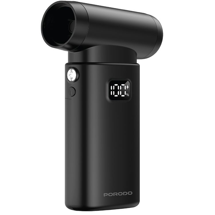 Porodo Lifestyle Powermax Turbo Blower Fan with Detachable Nozzles, 200W Rated Power, 8000mAh Battery Capacity, 2.5 Hours Working Time, 130000RPM Motor Speed, 5 Speed Levels, 1W LED Lighting Power, Type-C Charging Interface, Powerful Airflow - Black