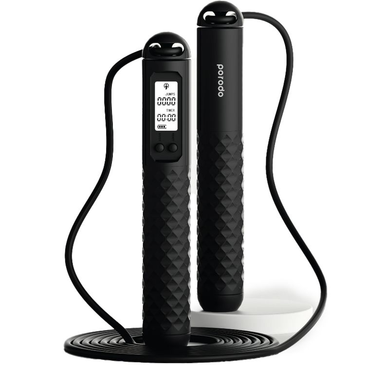 Porodo Lifestyle Smart Skipping Rope Forward & Reverse Counts, Battery Display Set Time - Black