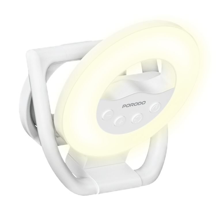 Porodo Lifestyle Snapbright Magnetic LED Fill Light with Adjustable Phone Mount, Up to 6 Hours Working Time, 800 mAh Battery Capacity, 3 Light Modes, Adjustable Angle Flexibility, 60 LED Beads, USB-C Charging Port - White
