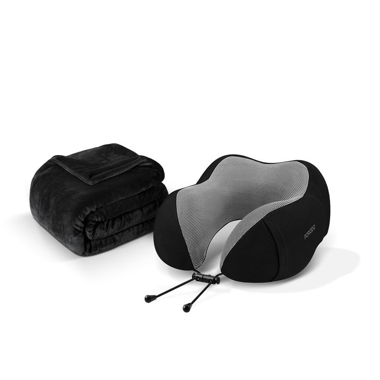 Porodo Lifestyle Travel Comfort Duo 2-in-1 Velvet & Memory Foam Pillow and Soft Flannel Blanket with Adjustable Clasp, Comfort & Optimum Support, 100% Polyester Material, Anatomically Correct Design, Ultra-Soft Cotton Velour Fabric, Cord Lock System, Head-Up Comfort Zone, Pocket Enclosure - Black