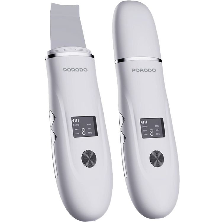 Porodo Lifestyle Ultrasonic Face Scrub & Peeler with LED Display, USB-C Charging, Cleanse, Exfoliate & Revitalize, Easy to Use, 150 Minutes Charging Time - White
