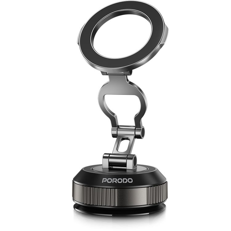 Porodo Magnetic Phone Holder with Vacuum Suction, Adjustable Viewing Angle, 360° Rotation, Scratch Resistant, Foldable State, 18-65kPa Suction Power, ABS, TPU & Zinc Alloy Material - Black