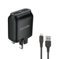 Porodo Dual Port UK Wall Charger with USB-A to Lightning Cable, Fast Charging & Auto ID Support, 2.4A USB-A Current, Fireproof Material, Overheat Protection, Protective Safeguard - Black